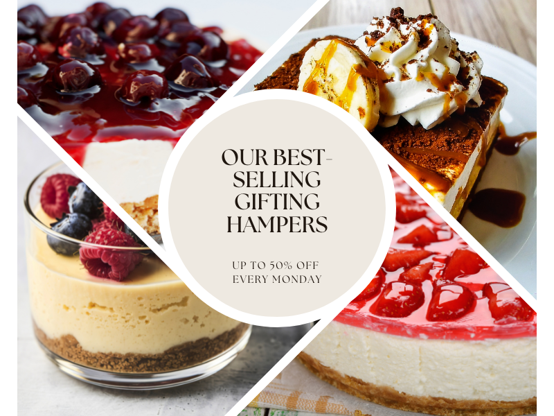 Cheesecake assortments are a big hit. Festive dessert boxes are also loved. And premium baked treats combined with cheesecake make the hamper feel extra special. These hampers are perfect when you want to gift something that feels different from the usual options. Something that actually feels like a treat